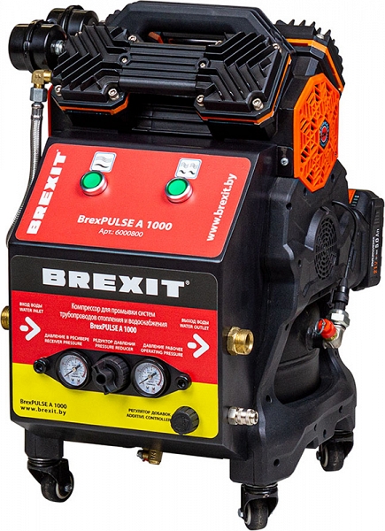 Аккумуляторный компрессор для промывки системы отопления Brexit BrexPulse A1000 (Брекзит БрекзПульс А1000) предназначен для эффективной промывки трубопроводов многоквартирных домов, питьевых и отопительных водопроводов, систем обогрева пола, радиаторов, дезинфекции систем питьевого водоснабжения (реализация данной функции требует применения редуктора и инжектора, поставляемых отдельно), защиты от налета и коррозии.