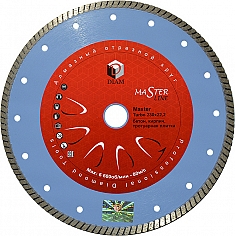Алмазный отрезной круг Diam Master Line Turbo Master 230 мм (Диам Мастер Лайн Турбо Мастер 230 мм) – профессиональный алмазный диск для сухой резки бетона, слабоармированного бетона, огнеупоров, кирпича, тротуарной плитки, общестроительных материалов.