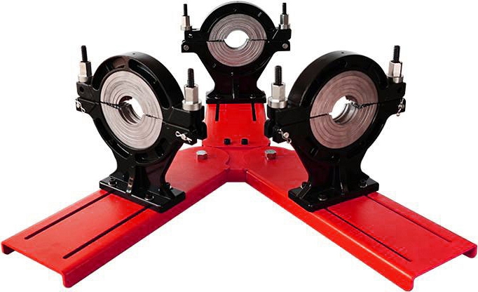 Позиционер для электромуфтовой сварки тройников Gas Fusion 63-160 мм (Газ Фьюжин 63-160 мм) используется для фиксации полиэтиленовых (пэ, пнд) труб, отводов и тройников Ø 63 – 160 мм при электромуфтовой сварке.