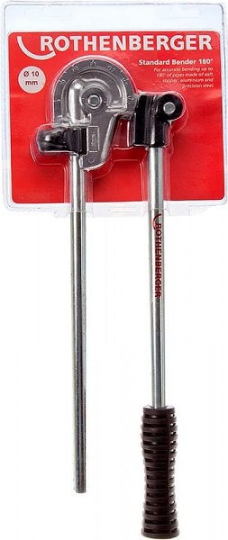 Ручной рычажный трубогиб Rothenberger 6 мм (Ротенбергер 6 мм) предназначен для точной холодной гибки двумя руками алюминиевых, мягких медных и тонкостенных стальных труб Ø 6 мм на угол до 180° в мастерских и на стройплощадках при монтаже разнообразных систем пневматики и гидравлики, вентиляции и кондиционирования, а также в машиностроении и холодильной технике.