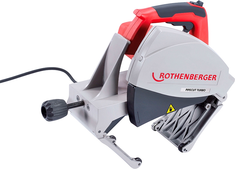 Труборез электрический Rothenberger Pipecut Turbo 250 (Ротенбергер Пайпкат Турбо 250) – электрическая дисковая пила для быстрой и точной резки стальных, нержавеющих, медных, алюминиевых, чугунных, пластиковых, металлопластиковых труб Ø 20 – 250 мм.